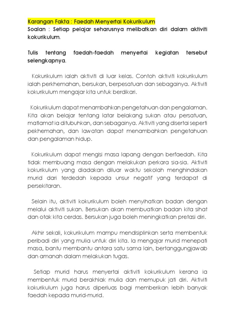 Contoh Karangan Fakta Bersama Dengan Soalan